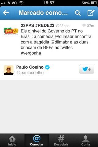Mas o rebanho de jornalistas domesticados, militantes e seguidores cooPTados estava a postos, destilando o ódio de praxe em 140 toques. O twitter @23pps foi dos mais críticos sobre a armação marqueteira, provocando reações diversas e extremas: do ataque nonsense de apoiadores como o ator José de Abreu, o Nilo do lixão de novela Avenida Brasil, à marcação de tweet favorito do escritor Paulo Coelho, para seus mais de 8 milhões de seguidores.